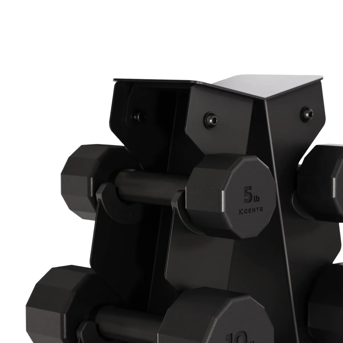 Til je home gym naar een hoger niveau met de Dumbbell Tower met 12-delige dumbbellset van Centr. Deze robuuste, ruimtebesparende set levert tot 92 kg aan progressieve weerstand in een strak A-frame — perfect voor wie serieus werkt aan kracht, vorm en duurzaamheid.