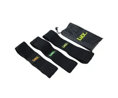 Resistance bands zijn rubberen strips waarvan de breedte toeneemt naarmate de weerstand van de resistance band hoger is.
