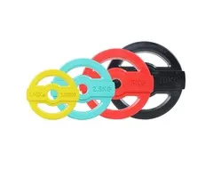Gewichtsplaten: Gewichtsplaten zijn losse, ronde schijven die op halterstangen kunnen worden geplaatst om het gewicht te verhogen. Deze schijven komen in verschillende gewichten en kunnen worden gestapeld om het totale gewicht aan te passen. Gewichtsplaten worden vaak gebruikt met halterschijfclips of klemsluitingen om ze stevig op hun plaats te houden. Fitnesskoerier richt zich enkel op de zogenaamde olympische schijven en bumperplates, geschikt voor olympische haterstangen met 50 mm sleeves.
