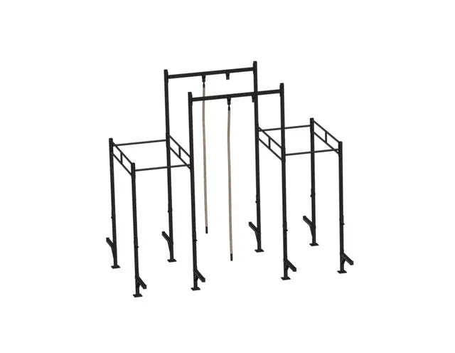 Dit is een kant en klaar voorbeeld van hoe een Heavy Duty Crossfit Rig van PT Essentials kan worden samengesteld. Dit rek kunt u direct in deze opstelling bestellen. De afwerking van dit Crossfit Rig is van zeer hoge kwaliteit. Deze Crossfit Rigs laten wij in Nederland fabriceren en we gebruiken hierbij extreem sterk staal van maar liefst 4 mm dik. De standaard afwerking is zijdeglans zwart bestaande uit zeer hoogwaardige KTL-lak. Klimtouwen zijn niet inbegrepen. Zie hiervoor: PT Essentials Monkey Klimtouwen