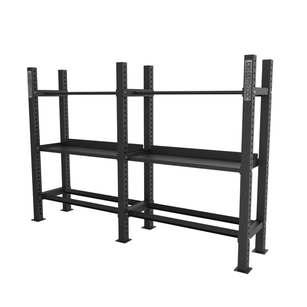 Het Crossmaxx® Opslag Systeem is volledig modulair en aanpasbaar, waardoor u uw opslagoplossing kunt personaliseren en uitbreiden naarmate uw verzameling groeit. Of het nu gaat om dumbbells, kettlebells, schijven of andere accessoires, deze plank past perfect in het grotere rek en biedt een solide basis voor al uw opbergbehoeften.