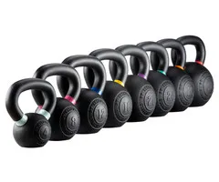 - Standaard stalen kettlebell: deze kettlebells zijn volledig van gietijzer gemaakt en zijn verkrijgbaar in diverse gewichten, doorgaans in stappen van 4 kg. De grootte van de kettlebells varieert met het gewicht.