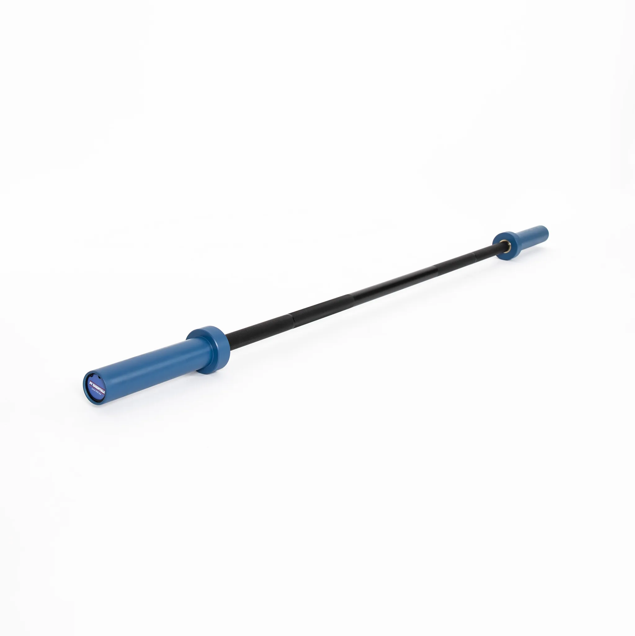 De stang heeft een eigen gewicht van slechts 5 kg en is geschikt voor schijven met een boring van 50 mm. De greep is voorzien van een stoere zwarte coating. De sleeves (schijfopnames) zijn afgewerkt met een mooie lichtblauwe finish waarmee je helemaal zal shinen in de box en de bars zijn voor de juniors direct eenvoudig te herkennen!