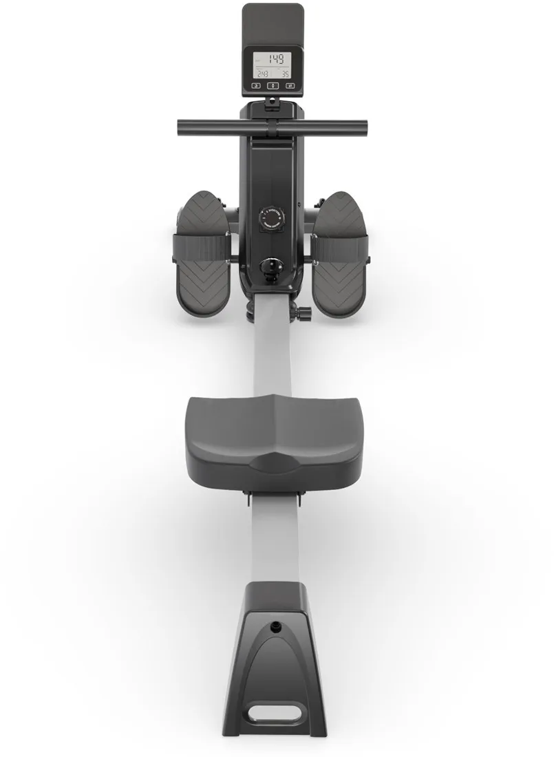 De lange enkelrail, verstelbare voetplaten met riemen en ergonomische handgreep zorgen voor een natuurlijke en comfortabele roeibeweging — zelfs tijdens lange sessies. Het apparaat is stil genoeg voor gebruik in huis dankzij het magnetische weerstandssysteem en is eenvoudig te verplaatsen dankzij de geïntegreerde transportwielen. Na je training klap je de rail op voor compacte opslag.