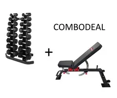 Een hexa dumbbellset van 2,5 t/m 20 kilo (8 paar) inclusief HD opbergtoren. Deze combodeal wordt geleverd met PRO Adjustable fitnessbench voor een com...