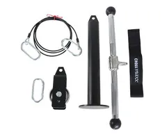 De lat bar is vaak aan het apparaat bevestigd door middel van universele snaphooks. Dit heeft als groot voordeel dat je er zelf verschillende hendels en grepen bij kunt aanschaffen, zoals bijvoorbeeld een dubbel triceps touw zodat je ook een triceps extension kunt uitvoeren bijvoorbeeld.
